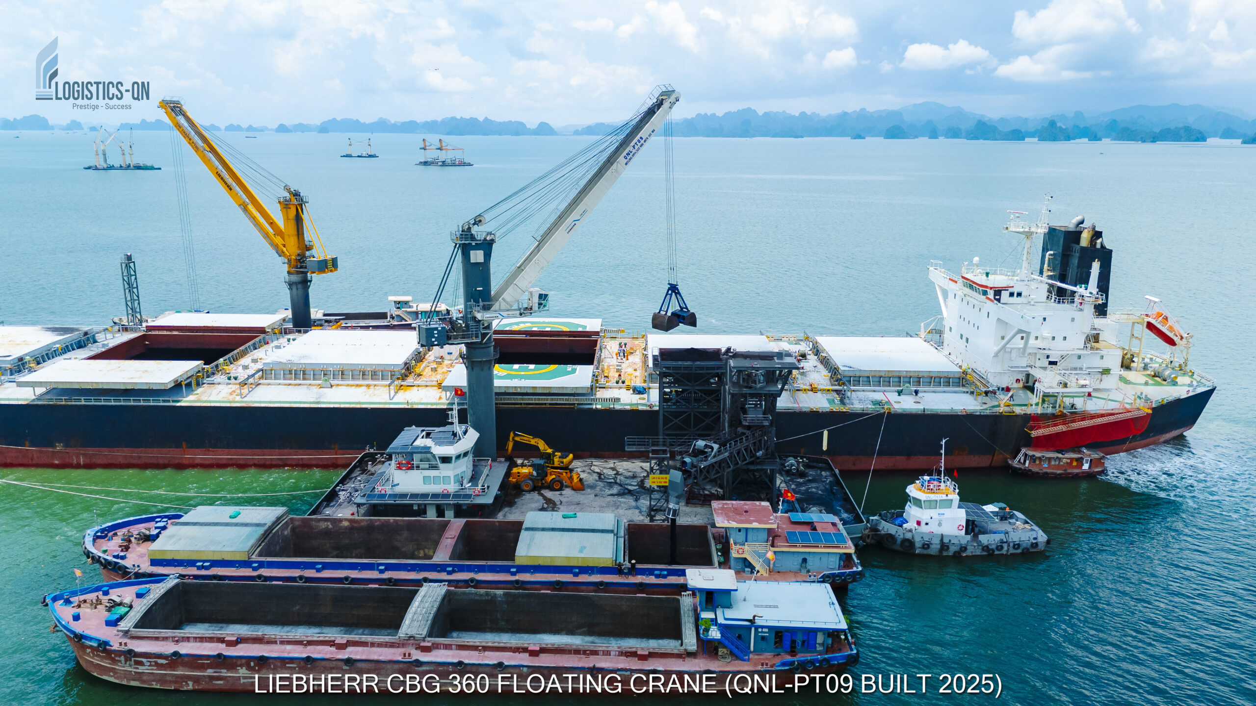 In June 2025, LOGISTICS-QN (QNL) officially held the launching ceremony and commenced operation of two newly built crane vessels named “QNL-PT09” and “QNL-PT10,” along with a flexible conveyor system. This marks a significant milestone in QNL’s strategic effort to enhance its capacity for maritime cargo handling and transportation.